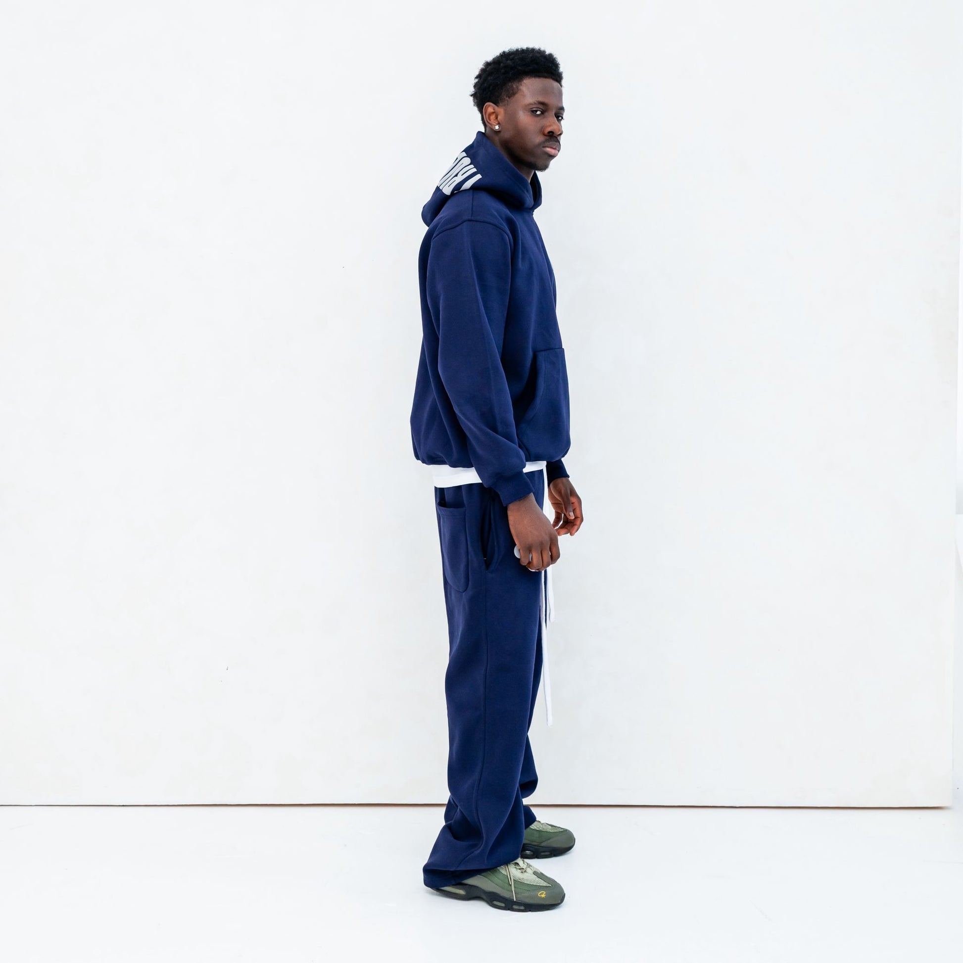 Our high quality tracksuit colorway, which represents both timelessness and adaptability, has evolved as an essential wardrobe staple. This piece exemplifies enduring quality and exquisite craftsmanship with its unusual form, which has stacking arm length and a drop shoulder design.